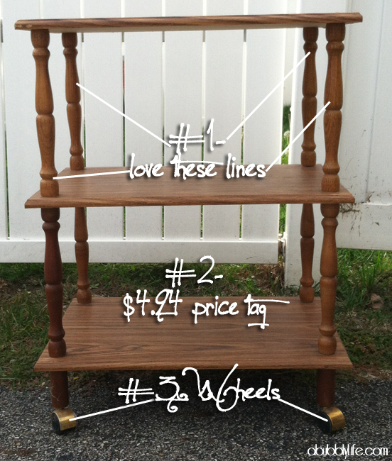 When I go thrift shopping, I have a mental list of items that I am on the look out to makeover or create. A bar cart has been high on my list for a few months now.