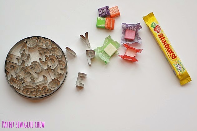 Roll the sweets out so they are about 5mm thick, and cut the letter shapes out.