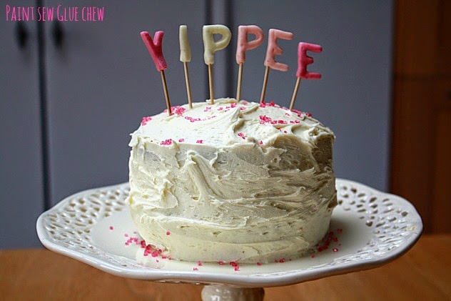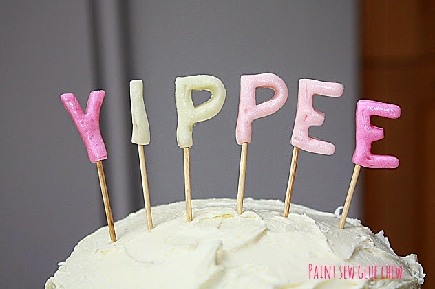 This was such an easy way to jazz up a cake, and could be used to monogram cupcakes if you want smaller eats.