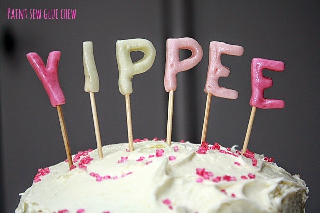 You could just place the letters directly on the cake, but somehow the toothpicks make it slightly fancier.