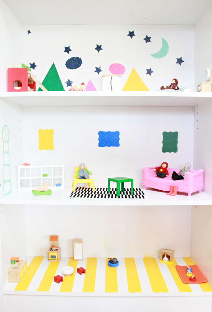 Anyhoo, enough about that and onto the dollhouse!! When I think of kids- I think COLOR. I wanted a whimsical, colorful spot of happy all wrapped into a house of fun (does that make sense?)