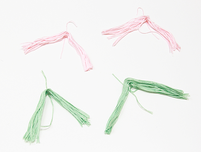 Cut the embroidery floss in half. Fold it over and tie to create a loop on top.