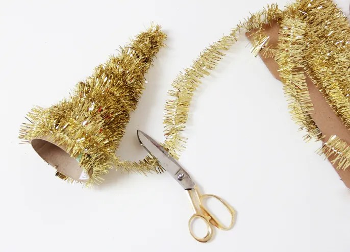 Last year, my Fa La La tinsel garland letters were one of the most popular DIYs from Christmastime. I love how sparkly, metallic and shiny the tinsel garland made the letters and wanted to use it again this year- and I chose trees!
