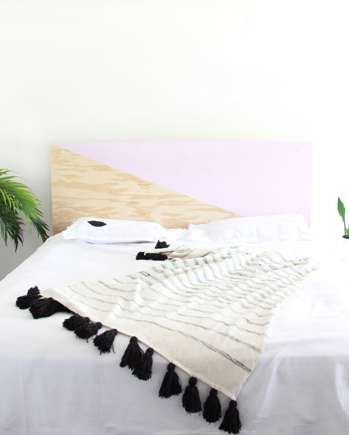 I call it a his/hers headboard. Half painted in a blush pink and I sleep on the pink side and Nick sleeps on the unpainted wood half. (Or if we are honest here, Nick sleeps on the edge of the bed and I am like a sprawled out starfish… I love you bebe)