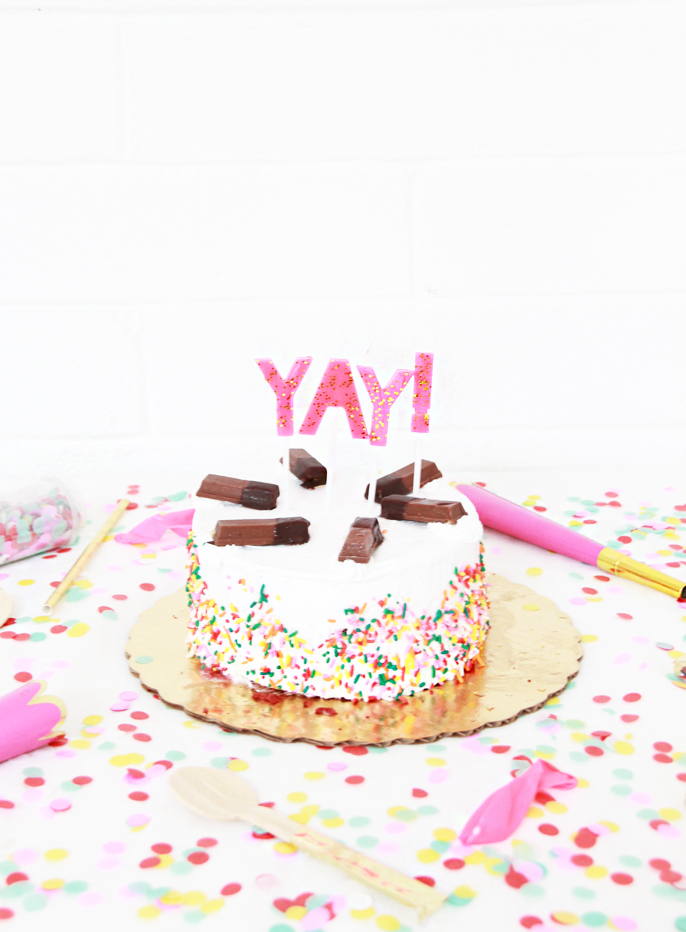 I picked up the cake from Cold Stone and got to decorating and creating the perfect birthday cake party in a box!