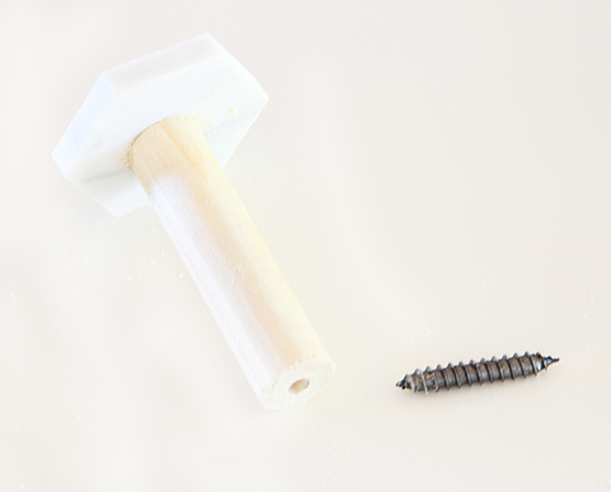 (you can also do these nest steps FIRST and then glue the wood with dowel screw in it to marble tile) I would do it this way, so you do not have to wait for glue to dry in order to put the dowel screw in… But, I realized that AFTER I did it…