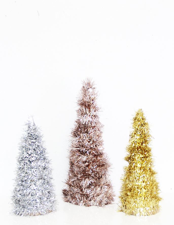 DIY Metallic Tinsel Trees